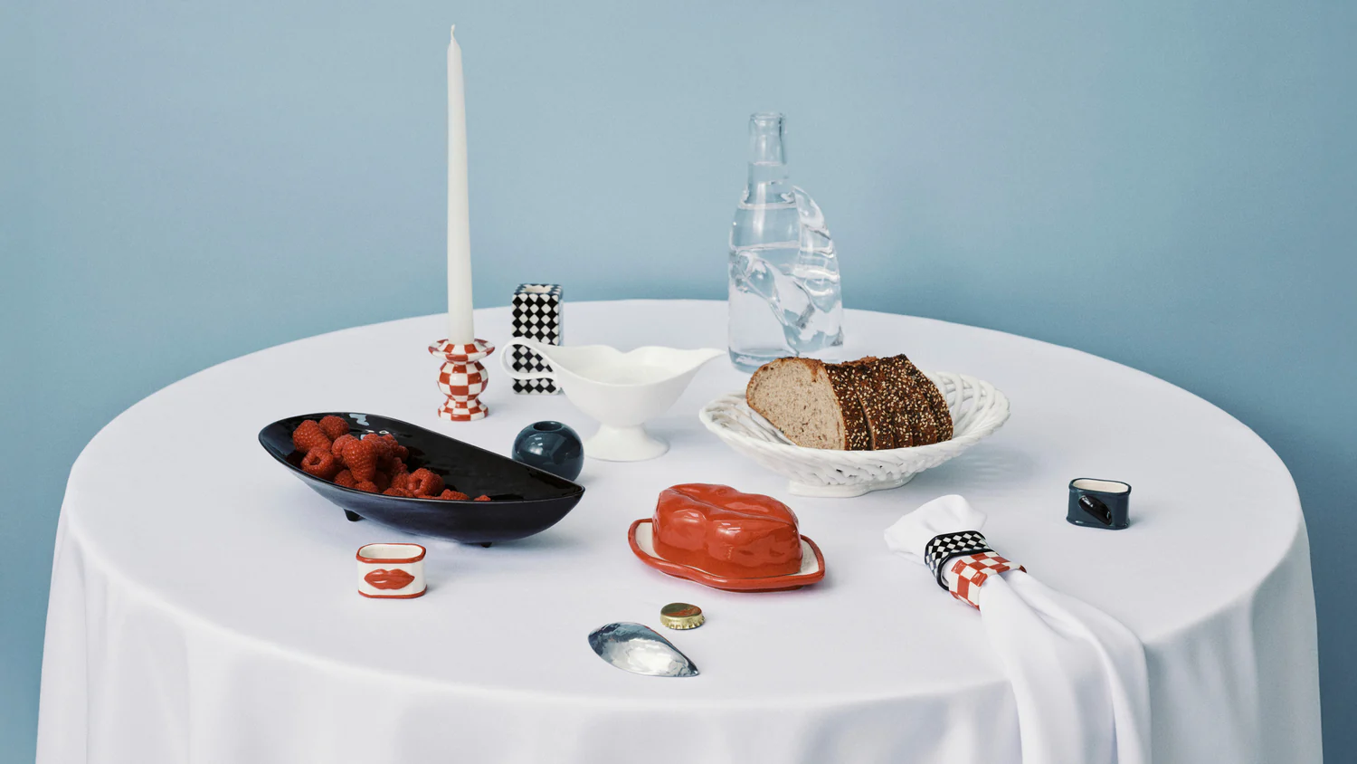 Esta cesta de pan de loza de Wouters & Hendrix combina arte y humor con la elegancia de lo cotidiano. Elaborada artesanalmente con textura trenzada y sellada en la base con unos labios esculpidos —un guiño lúdico a Salvador Dalí—, la cesta Salvador está disponible en rojo y blanco.