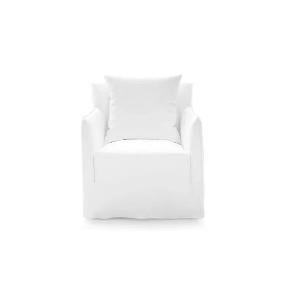 Los sillones de la familia Ghost tienen respaldos con alturas diferentes y asientos de variados tamaños, tienen una estructura minimalista y sutil, revestida de poliuretano expandido y cojines sueltos de mezcla de plumas. La característica principal de los sillones Ghost es la funda extraíble, una funda de gran tamaño cuyo perfil está destacado por las costuras a la vista, que permite desvestir y volver a vestir a los productos en un instante. Se trata de un diseño textil que cambia fácilmente el aspecto, permitiendo pasar de un look elegante a uno informal con facilidad y rápidamente.
